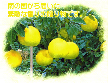 切り取った「ばんぺいゆ」の黄色い皮の部分と綿状の部分をネットにいれ2~3日陰干して、これをお風呂に入れると晩白柚の香りの爽やかさと美容効果があります。(ばんぺいゆ カタログより)